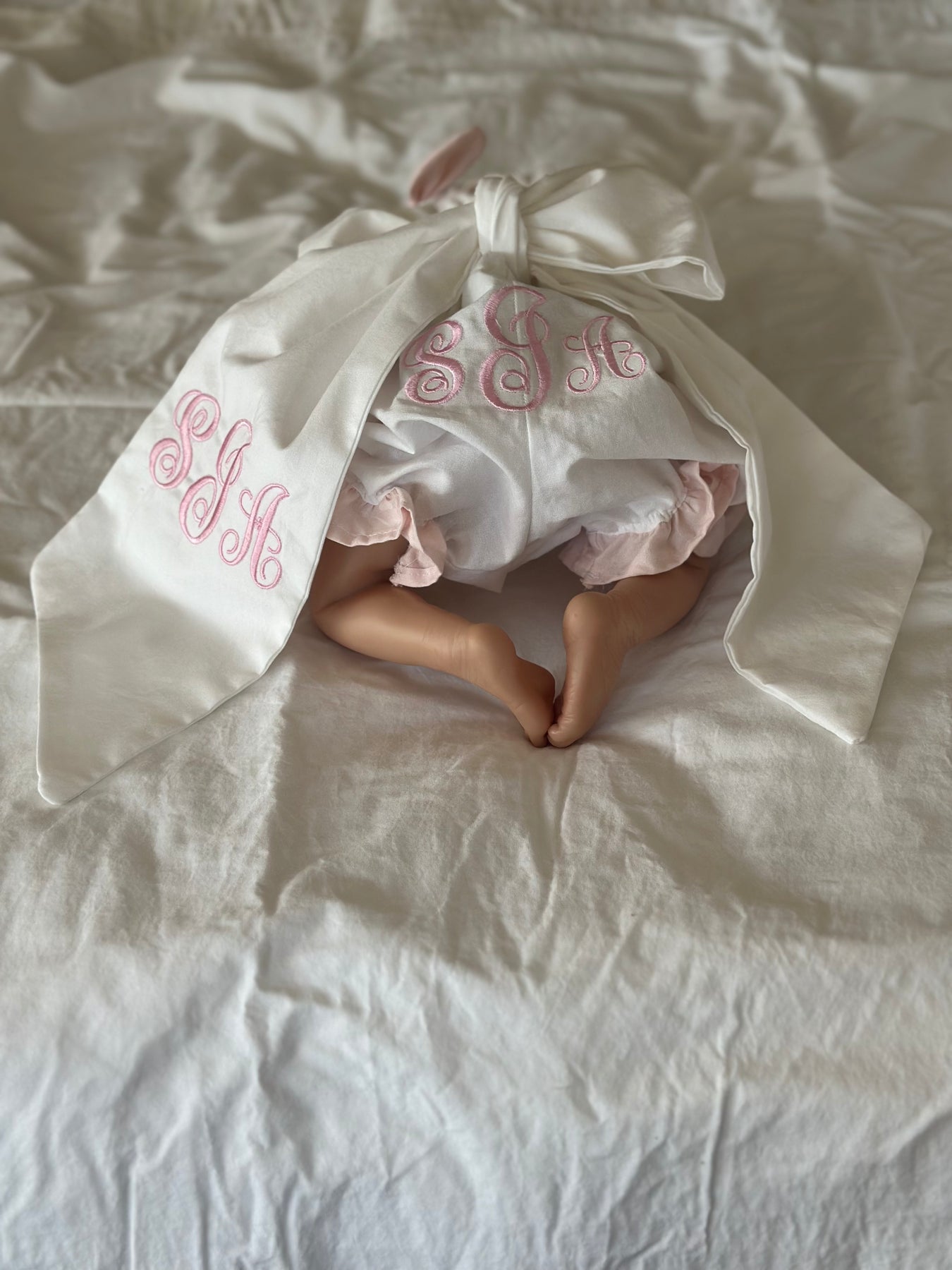Meet our Personalized Newborn Ruffled Bloomers — handmade to order in Alabama and designed to be the most beautiful thing she's ever worn for photos.